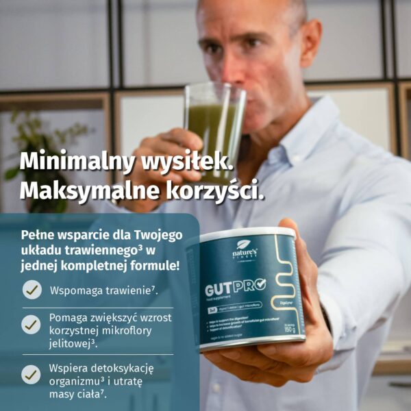 Wymieszaj 5 g (1 miarkę) produktu ze szklanką wody, naturalnego soku lub innego zimnego płynu według własnego uznania (150–250 ml). Napój należy spożyć natychmiast po przygotowaniu, ponieważ z upływem czasu gęstnieje. W razie potrzeby proszek można również dodać do smoothie lub jogurtu.