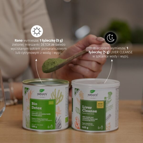 Wieczorem wymieszaj 1 łyżeczkę (5 g) LIVER CLEANSE w szklance wody i wypij. W ten sposób wspomożesz oczyszczanie wątroby w nocy i jak najlepiej wykorzystasz czas odpoczynku.